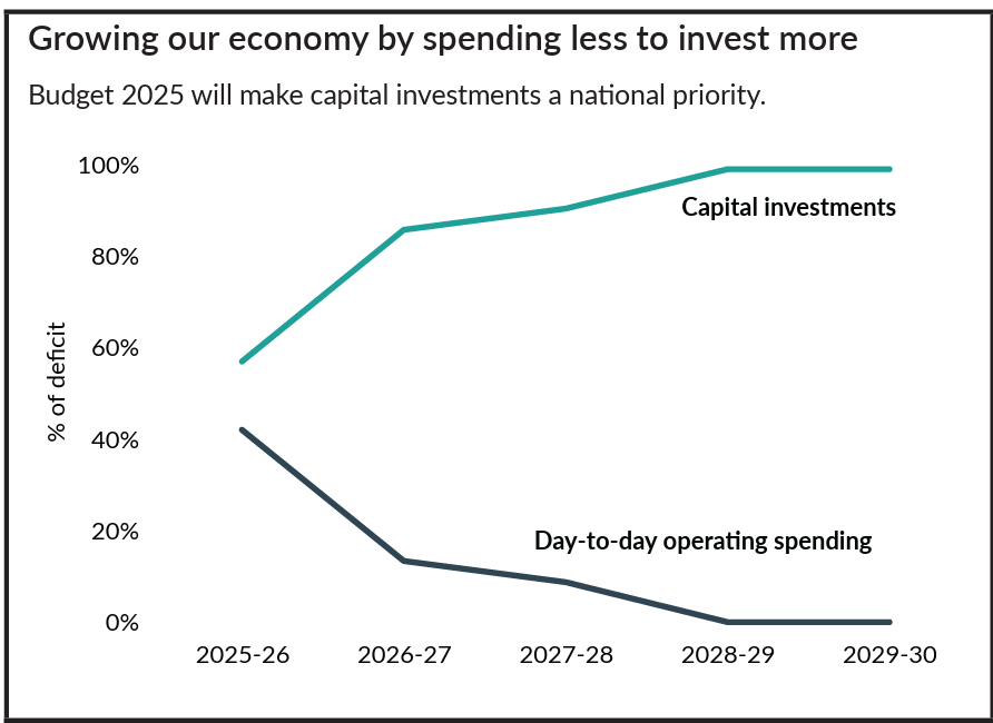 A similar approach is used in countries like the United Kingdom and New Zealand, as well as by some provinces here at home. In principle, this shift could enhance transparency by allowing a better understanding of how public funds are allocated between day‑to‑day program spending and long‑term investments intended to boost future growth. The capital spending budget is more complex because it’s harder to determine which expenditures will enhance growth and productivity. For instance, while the government is increasing defence spending to meet our NATO obligations, not all of it will contribute to productivity growth. Ottawa’s agenda highlights major infrastructure projects, defence initiatives, housing, significant undertakings like pipelines, enhanced ports, and the development of the Ring of Fire. Federal leadership believes there is a role for industrial policy, as well as measures aimed at broad deregulation and tax competitiveness.