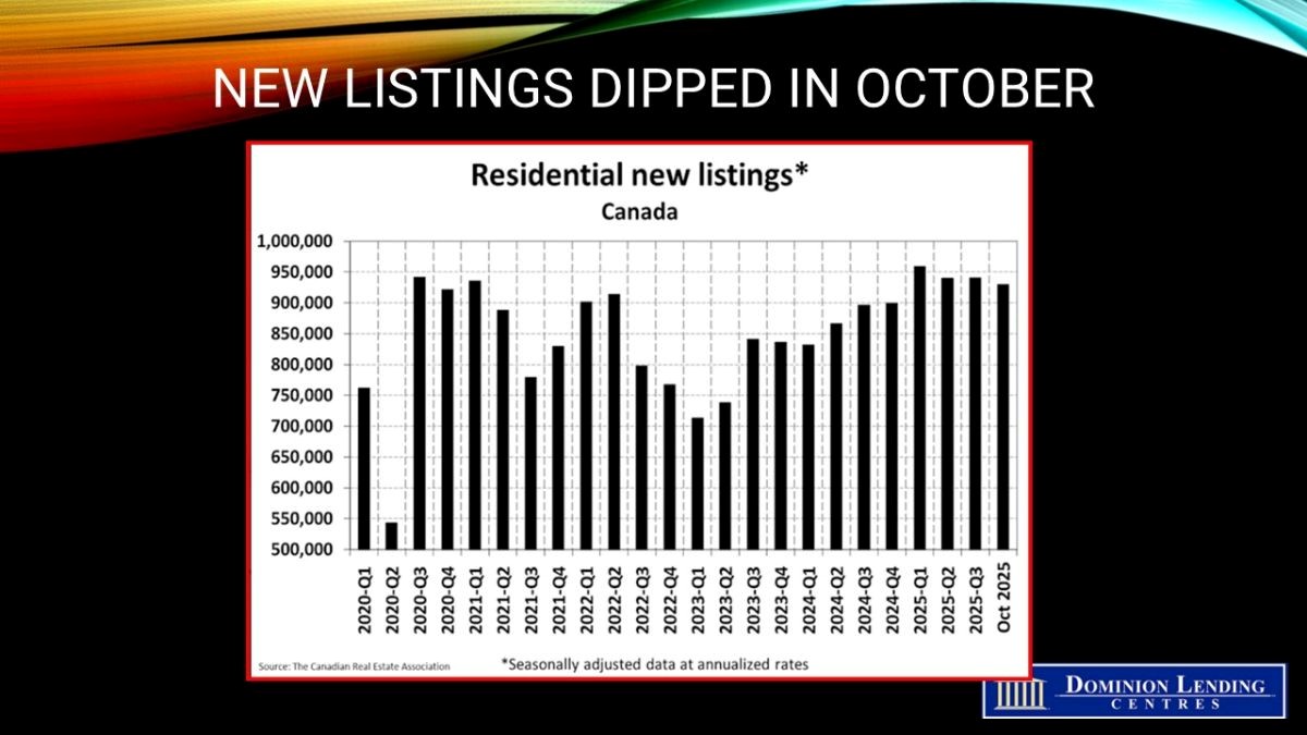There were 189,000 properties listed for sale on all Canadian MLS® Systems at the end of October 2025, up 7.2% from a year earlier but very close to the long-term average for that time of the year.