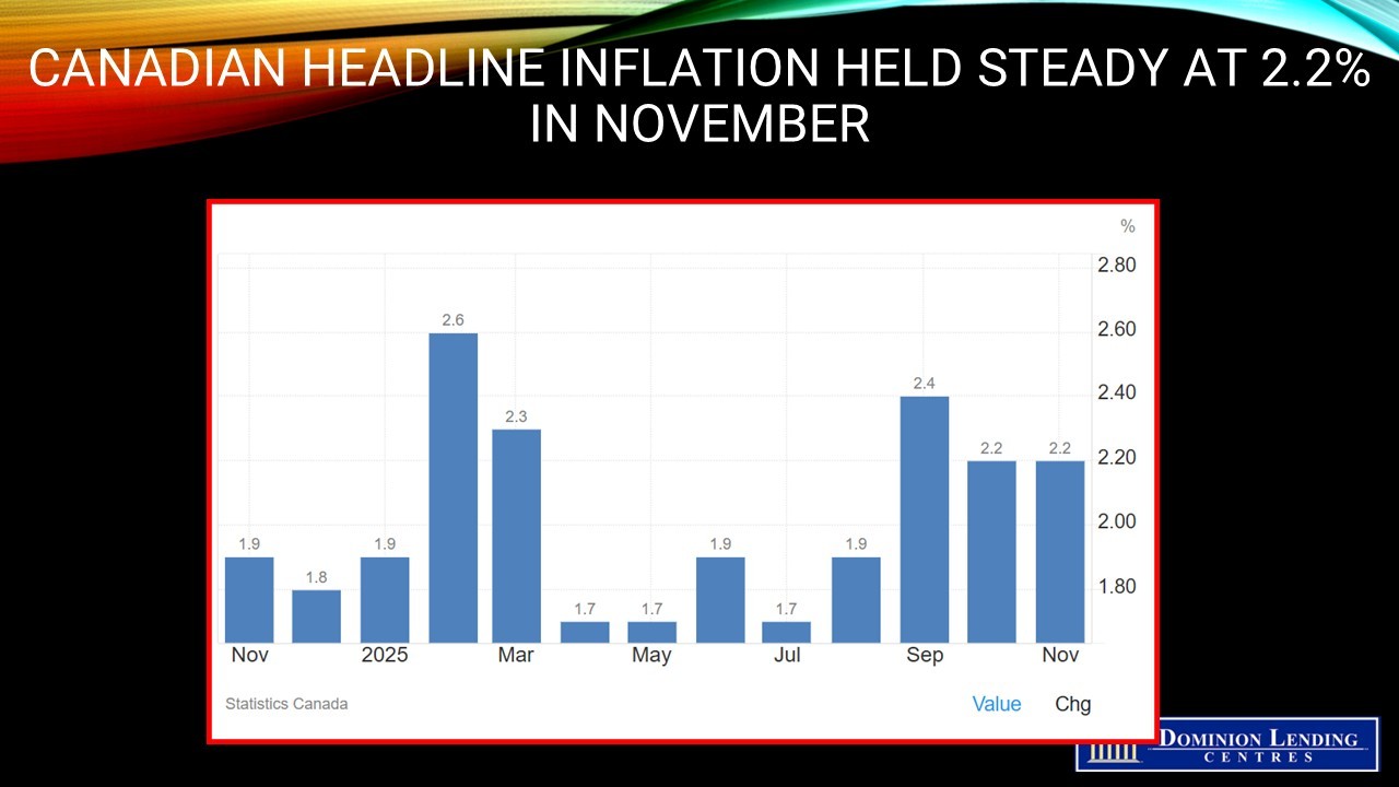 The Consumer Price Index (CPI) rose 2.2% on a year-over-year basis in November, matching the increase in October..