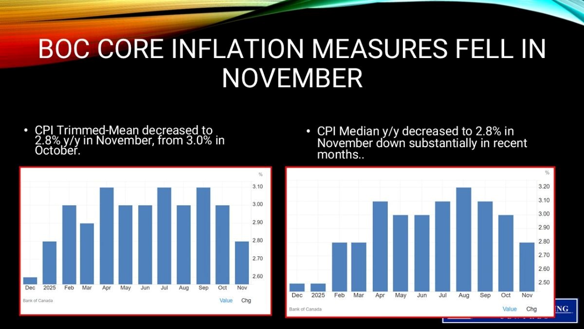 The main core inflation measures decelerated in November, with the BoC’s two measures both easing two ticks to 2.8% y/y (and both up just 0.1% m/m in seasonally adjusted terms). And, ex food & energy prices also rose just 0.1% m/m, cutting the annual rate three ticks to a moderate 2.4% y/y pace.